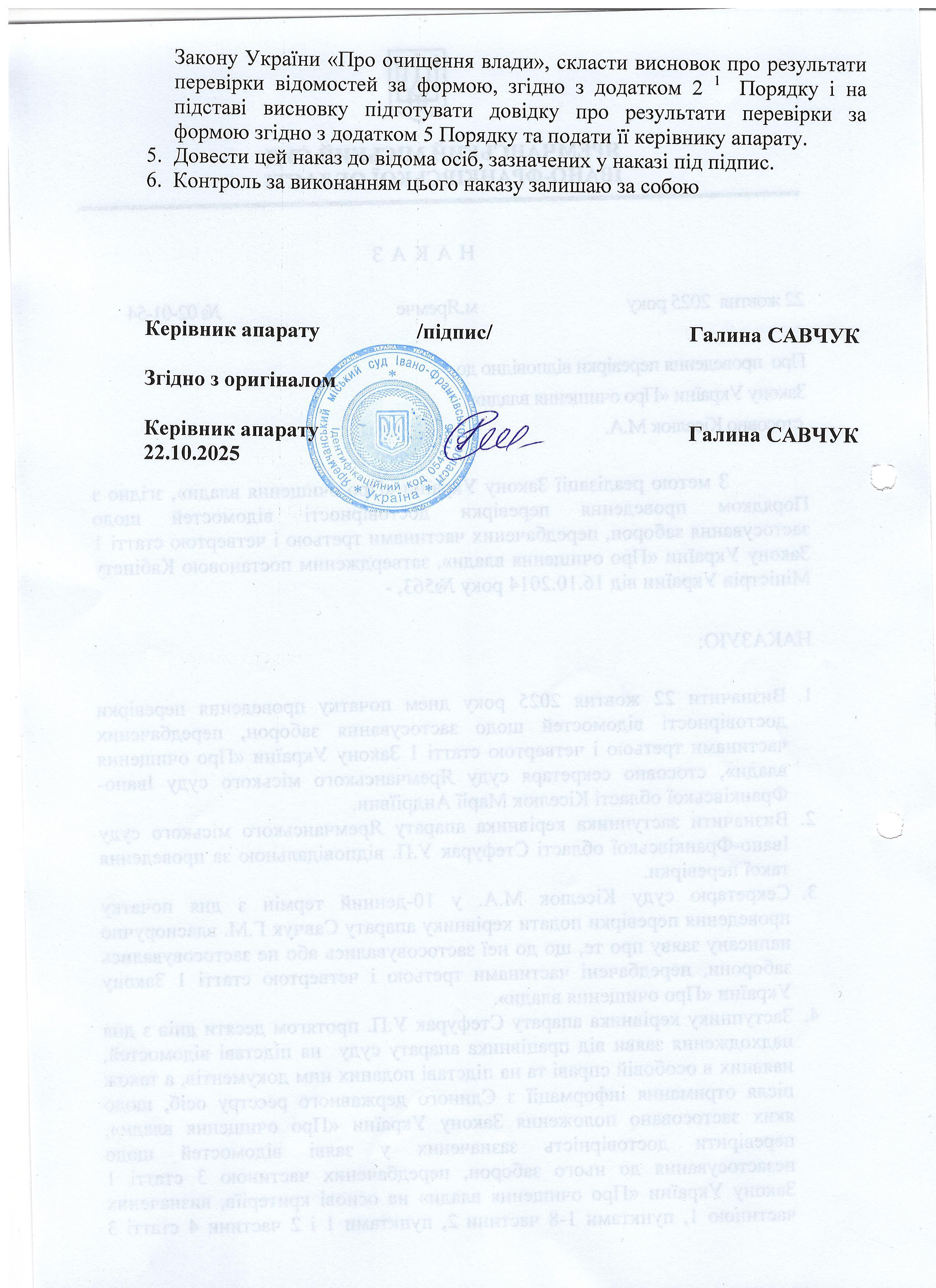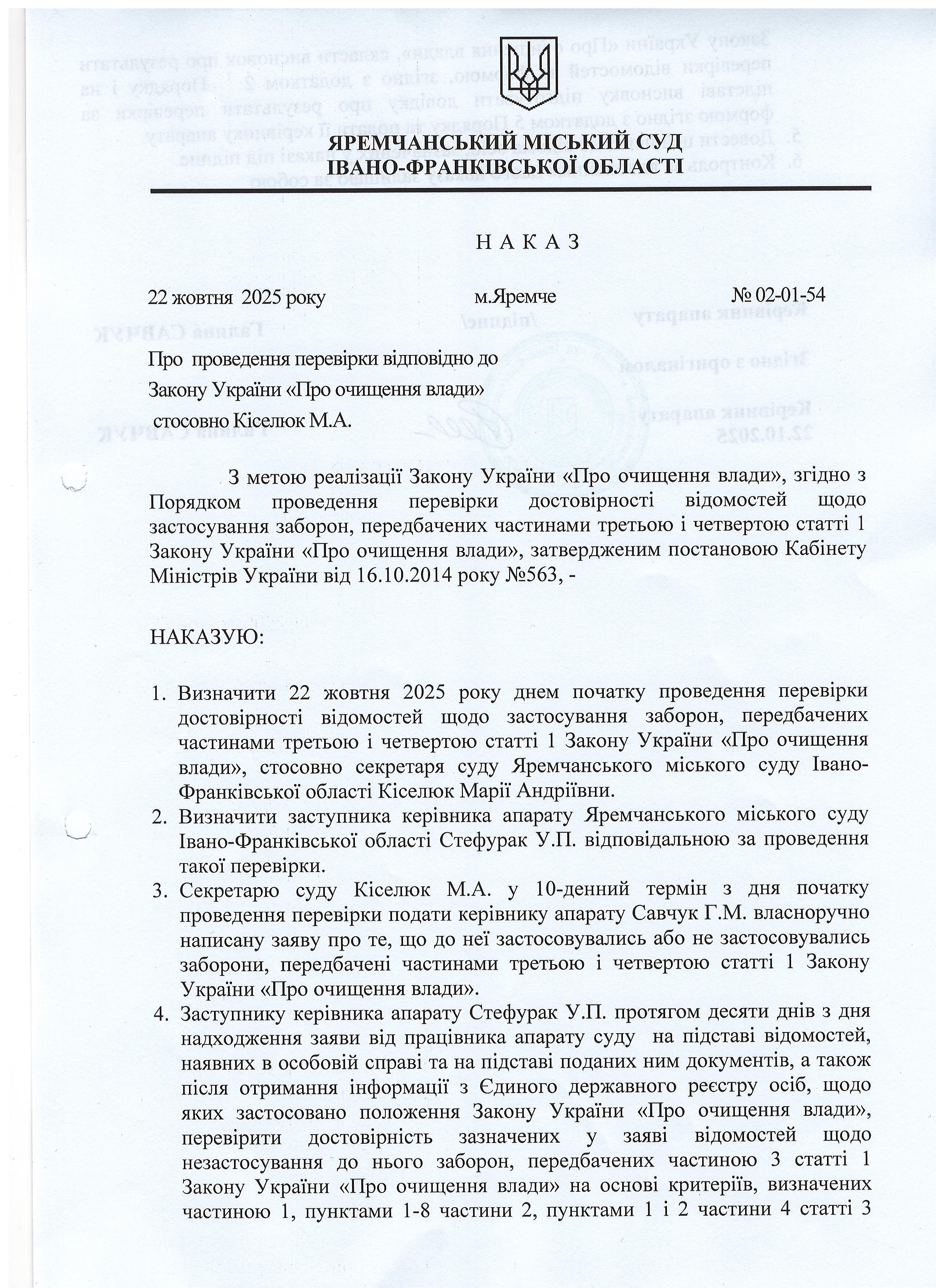 Повідомлення про початок перевірки відповідно до Закону України "Про очищення влади"